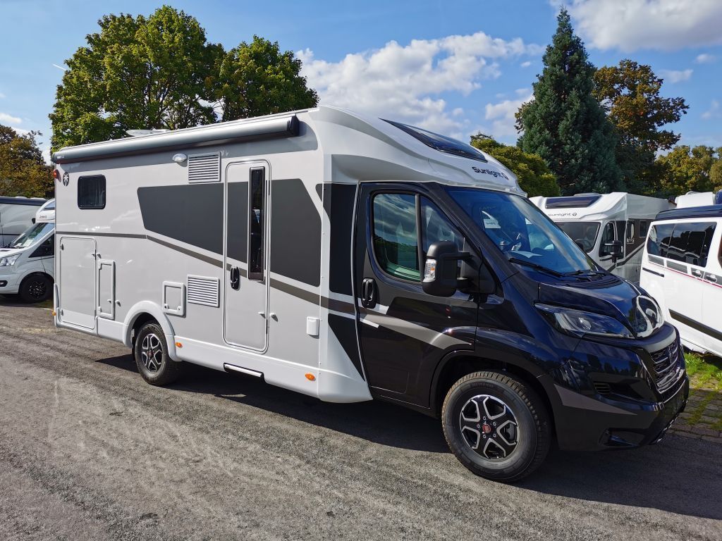 Familienfreundliches Reisemobil für alle, die es komfortabel mögen. An Bord befindet sich eine große Kühl- und Gefrierkombination, Kochfeld, Spüle, Dusche, Waschbecken, WC sowie ein Smart-TV-Gerät. Selbstverständlich ist auch ein Kombigerät für Heizung und Warmwasser mit digitalem Bedienelement dabei. Im Heck befinden sich zwei großzügige Längsbetten, die zu einem großen Doppelbett umgebaut werden können, über der Sitzgruppe ist das Hubbett für zwei weitere Personen. Ein weiterer Schlafplatz entsteht durch Umbau der Tischgruppe. Im Bad befinden sich das Waschbecken, das WC und die Dusche.